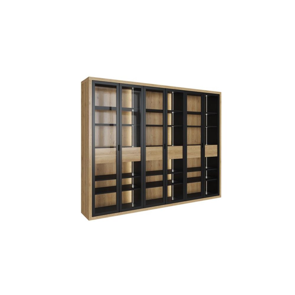 Biblioteka Oxford posiada korpus zewnętrzny, tył oraz szuflady fornirowane w wybarwieniu dąb onyx lub dąb naturalny.