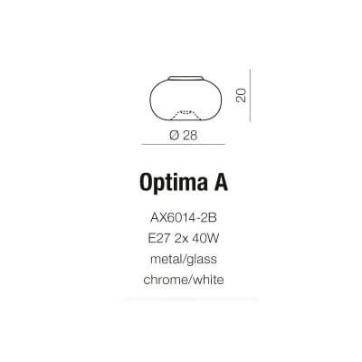 Kinkiet Optima wykonany jest z metalu i szkła. To klasyczny okrągły kinkiet z mlecznym kloszem, w środku którego znajdują się dwa źródła światła. Sprawdzi się najlepiej do oświetlenia ciągów komunikacyjnych.