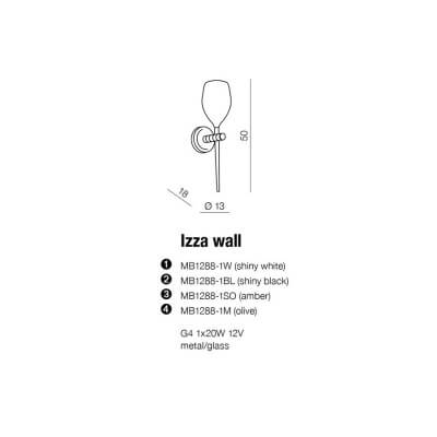 Kinkiet Izza wykonany jest z metalu i szkła. To prosta oprawa o kloszu w kształcie kieliszka. Kinkiet ten idealnie sprawdzi się do oświetlenia przedpokoju lub korytarza, jeśli użyjemy kilka sztuk. Oprawa wpasuje się we wnętrza nowoczesne jak i klasyczne.