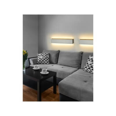 Oprawa Norman M należy do kategorii nowoczesnych kinkietów. To lampa o prostej formie – minimalistyczna a zarazem elegancka. Doskonale wpisuje w nowocześnie urządzone mieszkania, choć skromny i nieco surowy wygląd oprawy pasuje również do wielu innych stylów architektury wnętrz. Dobrze wpisze się między innymi w pomieszczenia industrialne lub klasyczne. Oprawa Norman White Wall M świetnie prezentuje się w salonie, sypialni, kuchni i biurze. Może być użytkowana zarówno w pomieszczeniach mieszkalnych, jak i komercyjnych. Daje stonowane światło, delikatnie sączące się zza dużej, nietransparentnej oprawy. Dzięki temu, że światło nie pada bezpośrednio na pomieszczenie, może budować klimatyczny nastrój wnętrza, np. w przypadku strefy wypoczynkowej salonu i innych pomieszczeń przeznaczonych do relaksu. Norman White Wall M ma zintegrowane pojedyncze źródło światła o mocy 13 W i napięciu 230 V. Strumień świetlny ma wartość 780 lm. Produkt należy do 4 klasy energetycznej. Lampa Norman White Wall M została wykonana z aluminium w kolorze białym. Solidna i trwała, pozwala na długie użytkowanie produktu. W sprzedaży jest dostępna w komplecie z żarówką LED.