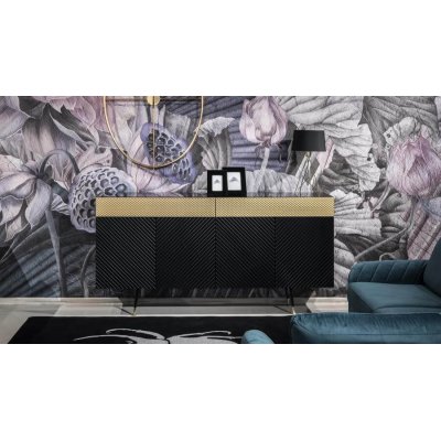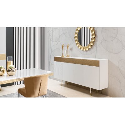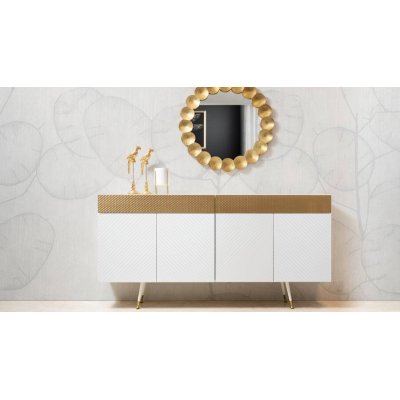 Malowana na czarny lub biały połysk. Posiada 2 szuflady z frontami w złotym półmacie.