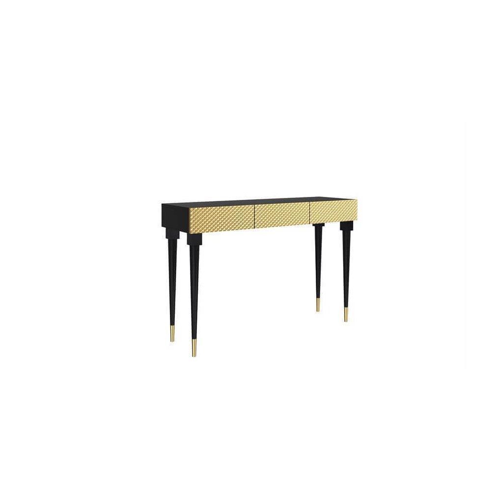 Malowana na czarny lub biały połysk. Posiada 3 szuflady z frontami w złotym półmacie.