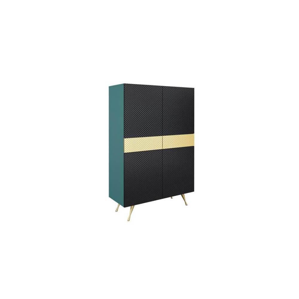 Stylowy kredens Vivien. Korpus wybarwiono w kolorze petrol (zieleń butelkowa). Półki wewnątrz można regulować.