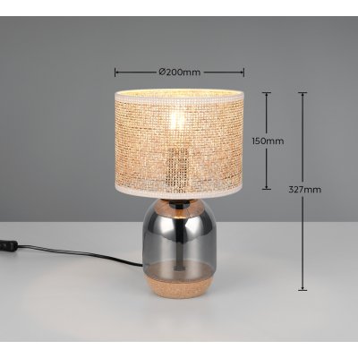 Lampka biurkowa Tara posiada wiklinowy klosz w jasnym odcieniu.