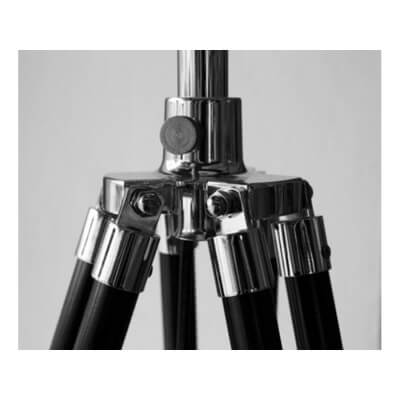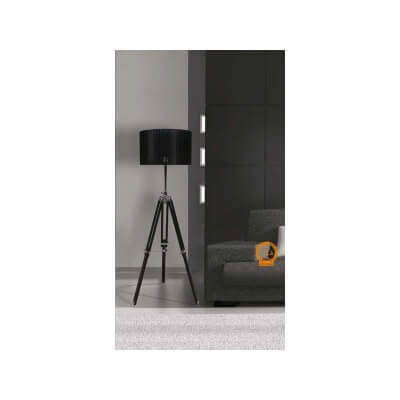 Lampa stojąca Cinema wykonana jest z metalu, drewna oraz tkaniny. Duży materiałowy klosz zamontowanym jest na stabilnym trójnogu. Lampa ta z pewnością sprawdzi się dobrze, jako oświetlenie w każdym nowoczesnym wnętrzu. Źródło światła w tej lampie to żarówka typu E27 (tzw. duży gwint) o maksymalnej mocy 60W.