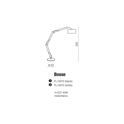 Lampa stojąca Bosse wykonana jest z metalu i tkaniny. To wysoka i funkcjonalna lampa z ruchomym źródłem światła. Ma oryginalny, minimalistyczny i nieco industrialny wygląd. Będzie pasować idealnie do salonu. Można w niej zastosować żarówkę tradycyjną jak i ledową.