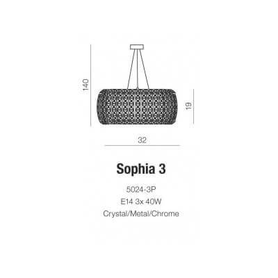 Nowoczesny design, nowoczesne oświetlenie w przystępnej cenie. Lampa Sophia 3 wykonana jest z kryształu oraz matowego szkła. Źródła światła w tej lampie to żarówka E 14 o maksymalnej mocy 40 W.