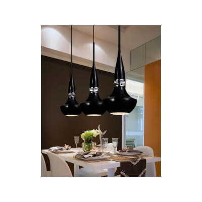 Nietuzinkowy a zarazem surowy kształt lampy udekoruje nawet najbardziej nudne wnętrze. Surowce z jakich wykonano lampy to metal oraz czarne szkło. Źródło światła jakie użyto w lampie to żarówka E14 o maksymalnej mocy 40W.