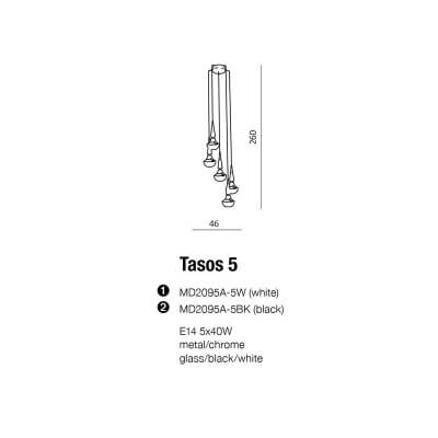 Nowoczesna oprawa oświetleniowa charakteryzująca się niepowtarzalnym designem. TASOS 5 to lampa wisząca wykonana z chromowanego metalu oraz czarnego szkła. Źródłem światła w lampie jest 5 żarówek E14 (tzw. mały gwint) o maksymalnej mocy 40W Oprawa posiada 24 miesięczna gwarancję.