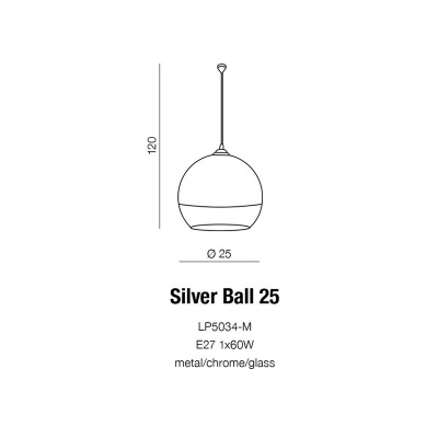 Silver Ball 25 należy do serii nowoczesnych lamp wiszących. Wyróżnia się eleganckim i zarazem prostym designem, doskonale korespondującym z wnętrzami w stylu nowoczesnym oraz glamour. Inwestorzy i architekci często decydują się też na użycie oprawy we wnętrzach utrzymanych w innej stylistyce. Silver Ball 25 może być montowana pojedynczo lub zestawiana po kilka sztuk, tworząc w ten sposób efektowne i funkcjonalne oświetlenie wnętrza. Silver Ball 25 sprawdza się zarówno w pomieszczeniach mieszkalnych, jak i komercyjnych. Może być montowana w pokojach, salonach, nad wyspą kuchenną oraz w biurach. Ma pojedyncze źródło światła o napięciu 230 V i efektowną oprawę, wykonaną ze szkła oraz metalu. Zastosowany w oprawie gwint E27, daje możliwość stosowania lampy z żarówkami LED. Lampa należy do 1 klasy energetycznej. Produkt jest sprzedawany bez żarówki w komplecie.
