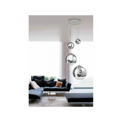 Lampa Silver Ball 4 to bardzo modna i elegancka oprawa oświetleniowa z kategorii lamp wiszących. Jej oryginalny, asymetryczny i przyciągający uwagę design sprawia, że cieszy się dużym zainteresowaniem wśród klientów. Doskonale wpisuje się w pomieszczenia w stylu nowoczesnym oraz glamour. Przez architektów oraz prywatnych inwestorów bywa łączona również z innymi stylami, dając wiele możliwości aranżacyjnych. Może być montowana w takich pomieszczeniach jak salon, pokój, sypialnia, kuchnia oraz biuro. Doskonale prezentuje się zawieszona nad strefą wypoczynkową. Poprzez swój oryginalny a zarazem elegancki wygląd wprowadza do pomieszczenia odrobinę luksusu. Lampa Silver Ball 4 ma 4 źródła światła, z których każde jest zawieszone na innej wysokości i ukryte w kloszu o innym rozmiarze. Lampę wykonano z wysokiej jakości materiałów, wpływających na jej trwałość oraz estetyczny wygląd. Została wyprodukowana z metalu oraz szkła. Oprawa dostępna jest w kolorze chromu. Użytkownicy mają możliwość zmiany wysokości, na jakiej została zawieszona. Lampa ma źródło światła o napięciu 230 V. Gwint typu E27 umożliwia zastosowanie żarówek LED. Produkt jest zaliczany do 1 klasy energetycznej. W sprzedaży bez żarówek w komplecie.