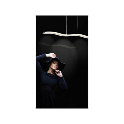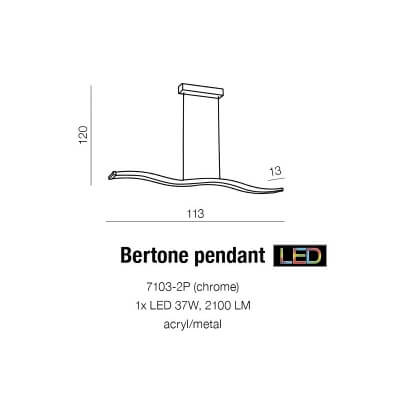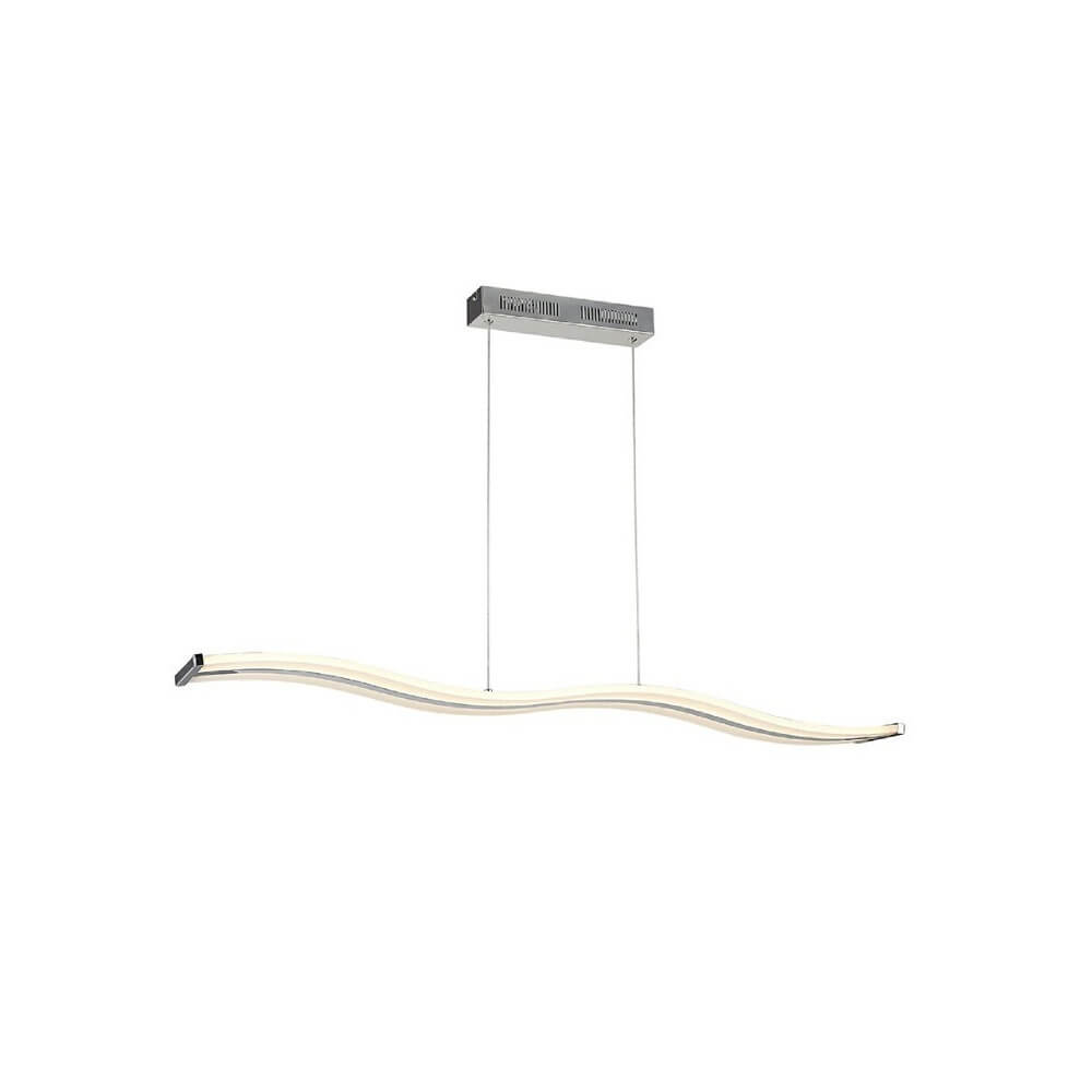 Lampa wisząca Bertone to nowoczesna lampa idealnie nadająca się do sypialni, przedpokoju, salonu lub jadalni. Klosz wykonany jest z białego akrylu z elementami chromowymi. Kształt lampy przypomina delikatną falę. Oświetlenie ledowe, więc lampa jest energooszczędna.