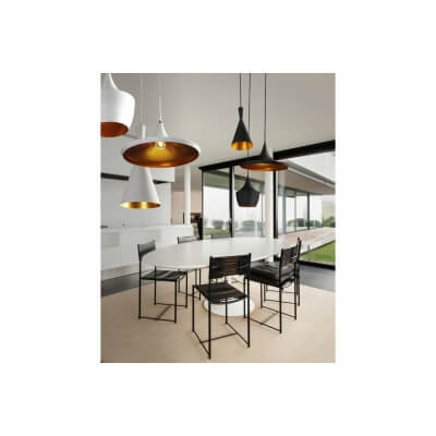 Lampa wisząca Mix to oprawa składająca się z trzech kloszy o różnym kształcie. Jej wygląd jest oryginalny i nowoczesny. Wykonana jest z metalu w dwóch kolorach. Zewnątrz jest białego koloru, od wewnątrz złota. Jej wyjątkowy wygląd sprawia że będzie ona pasować do wielu pomieszczeń.