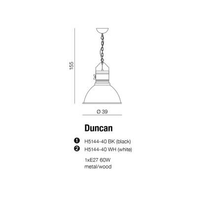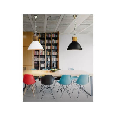 Lampa wisząca Duncan to przykład oświetlenia przemysłowego. Zaokrąglony klosz o minimalistycznym stylu został połączony z drewnianym walcem umieszczonym pomiędzy oprawą a przewodem zasilającym. Idealnie sprawdzi się w kuchni, salonie czy biurze. Jest możliwość zastosowania energooszczędnych żarówek LED.