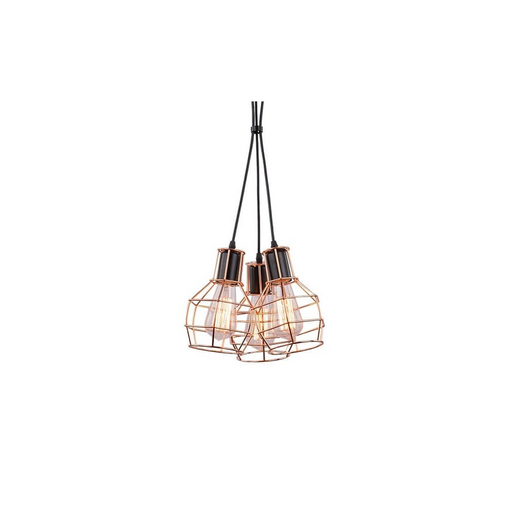 Carron 3 to produkt z kategorii lamp wiszących. Oprawa została wykonana w modnym obecnie stylu industrialnym, co czyni z niej jeden z najbardziej pożądanych obiektów na rynku oświetleniowym. Popyt na proste, skromne i minimalistyczne oświetlenie trwa nieprzerwanie od kilku lat. Wykonane w tej formie oprawy doskonale sprawdzają się we wnętrzach utrzymanych w różnych stylach. Równie często goszczą w loftach, co we wnętrzach zaaranżowanych nowocześnie, wprowadzając do nich odrobinę surowej elegancji. Lampa Carron 3 nadaje się do pomieszczeń mieszkalnych i komercyjnych. Doskonale prezentuje się nad stołem w jadalni oraz wyspą lub barkiem w kuchni. Dobrze wygląda nad strefą wypoczynkową w salonie, a także we wnętrzach pubów, klubów i restauracji. Nadaje pomieszczeniu loftowego klimatu i pomimo swojego surowego wyglądu, ociepla wnętrze. Ma 3 identyczne w kolorze i formie klosze, podwieszone na trzech linach na jednakowej wysokości. Prezentują się bardzo efektownie i elegancko. Oprawa została wykonana z metalu, któremu nadano kolor miedzi. Nie tylko zastosowane materiały, ale również forma oprawy oraz samych kloszy nawiązują do stylu industrialnego. Klosze są stosunkowo nieduże, metalowe i ażurowe, o symetrycznym i regularnym kształcie. Każdy z nich osłania jedno źródło światła. W oprawie można stosować standardowe żarówki typu E27 albo żarówki LED. Źródło światła ma napięcie 230 V. Carron 3 umożliwia użytkownikom regulację wysokości oprawy. Lampa należy do 5 klasy energetycznej. W sprzedaży bez żarówek w komplecie.