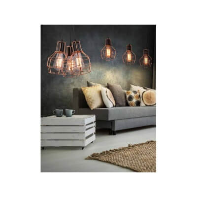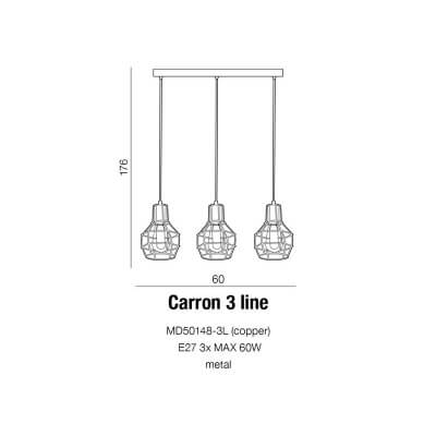 Carron 3 Line to produkt z kategorii lamp wiszących. Oprawa została wykonana w modnym obecnie stylu industrialnym, co czyni z niej jeden z najbardziej pożądanych obiektów na rynku oświetleniowym. Popyt na proste, skromne i minimalistyczne oświetlenie trwa nieprzerwanie od kilku lat. Wykonane w tej formie oprawy doskonale sprawdzają się we wnętrzach utrzymanych w różnych stylach. Równie często goszczą w loftach, co we wnętrzach zaaranżowanych nowocześnie, wprowadzając do nich odrobinę surowej elegancji. Lampa Carron 3 Line nadaje się do pomieszczeń mieszkalnych i komercyjnych. Doskonale prezentuje się nad stołem w jadalni oraz wyspą lub barkiem w kuchni. Dobrze wygląda nad strefą wypoczynkową w salonie, a także we wnętrzach pubów, klubów i restauracji. Nadaje pomieszczeniu loftowego klimatu i pomimo swojego surowego wyglądu, ociepla wnętrze. Ma 3 identyczne w kolorze i formie klosze, podwieszone w jednej linii i na jednakowej wysokości. Prezentują się bardzo efektownie i elegancko. Oprawa została wykonana z metalu, któremu nadano kolor miedzi. Nie tylko zastosowane materiały, ale również forma oprawy oraz samych kloszy nawiązują do stylu industrialnego. Klosze są stosunkowo nieduże, metalowe i ażurowe, o symetrycznym i regularnym kształcie. Każdy z nich osłania jedno źródło światła. W oprawie można stosować standardowe żarówki typu E27 albo żarówki LED. Źródło światła ma napięcie 230 V. Carron 3 Line umożliwia użytkownikom regulację wysokości oprawy. Lampa należy do 5 klasy energetycznej. W sprzedaży bez żarówek w komplecie.