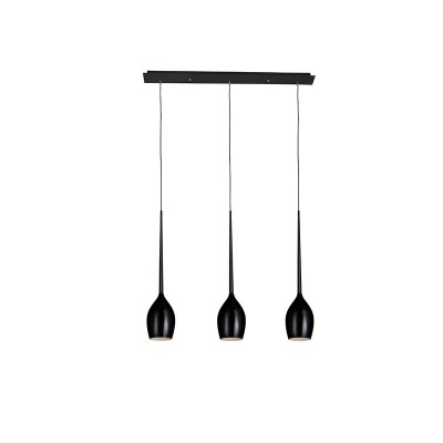 Izza 3 Shiny Black to produkt z kategorii nowoczesnych lamp wiszących. Odznacza się prostą formą, która dobrze koresponduje z różnymi stylami, między innymi nowoczesnym i klasycznym. We wnętrzach prezentuje się bardzo elegancko, czym zwraca uwagę użytkowników. Może stanowić nie tylko funkcjonalne oświetlenie, ale również ciekawy element dekoracyjny. Lampa Izza 3 Shiny Black doskonale sprawdza się w pomieszczeniach mieszkalnych oraz komercyjnych. Może być montowana w różnych wnętrzach, choć przez inwestorów i projektantów najchętniej bywa umieszczana nad strefą wypoczynkową w salonie oraz w kuchni nad stołem albo wyspą. Oprawa Izza 3 Shiny Black ma 3 źródła światła o napięciu 230 V. Każde z nich osłania nieduży, czarny i połyskujący klosz, z wydłużonym trzonkiem. Wszystkie klosze zamontowano w jednej linii, na tej samej wysokości, w regularnych odstępach. Do wykonania oprawy użyto metalu oraz szkła. Klienci mają też do wyboru produkt o identycznej formie, ale innej kolorystyce (Izzy 3 Shiny White o kloszu w kolorze białym i czarnych trzonkach). Oprawa Izza 3 Shiny Black ma gwint typu E14, który umożliwia zastosowanie energooszczędnych żarówek LED. Regulacja wysokości lampy pozwala dostosować ją do indywidualnych wymagań użytkowników. Produkt jest zaliczany do 1 klasy energetycznej. W sprzedaży bez żarówek w komplecie.