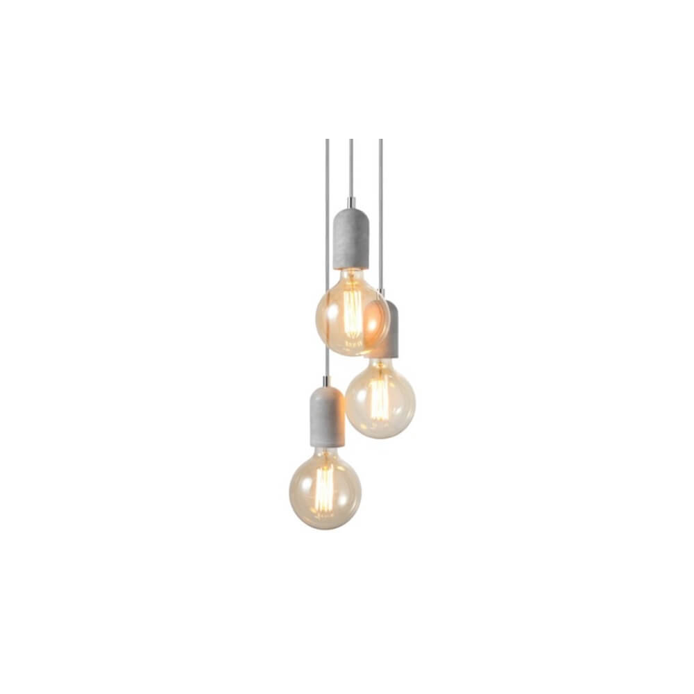 Oprawa Volta 3 należy do kategorii lamp wiszących. Odznacza się prostą, minimalistyczną formą i zastosowaniem surowych, nawiązujących do industrialnej stylistyki materiałów. Lampa Volta 3 została wykonana z szarego betonu. Jej oszczędna forma przejawia się całkowitym brakiem klosza i pozostawieniem nieosłoniętej żarówki, umieszczonej w niewielkiej, betonowej oprawie. Taka lampa doskonale wpisuje się w minimalistyczne wnętrza. Dobrze współgra nie tylko ze stylem industrialnym i loftowym, ale także nowoczesnym. Znajduje zastosowanie zarówno w pomieszczeniach mieszkalnych, jak i komercyjnych. Lampa Volta 3 doskonale prezentuje się w salonie, biurze, kuchni oraz w wielu innych pomieszczeniach. Nada się również do restauracji i pubu o minimalistycznym wystroju. Pomimo swojej surowej formy, ociepla wnętrze i nadaje mu przyjemny klimat. Dzieje się tak za sprawą pozostającej na widoku żarówki, która wprowadza do wnętrza przyjemne światło. Lampa Volta 3 ma 3 źródła światła o napięciu 230 V. Każde z nich zostało zawieszone na innej wysokości, na niewielkiej, okrągłej podsufitce. W oprawie zastosowano gwint E27, który daje możliwość używania żarówek LED. Dużym atutem jest opcja regulacji wysokości i dostosowania lampy do indywidualnych wymagań klienta. Prezentowana oprawa należy do 5 klasy energetycznej. W sprzedaży dostępna bez żarówek w komplecie.
