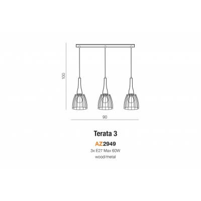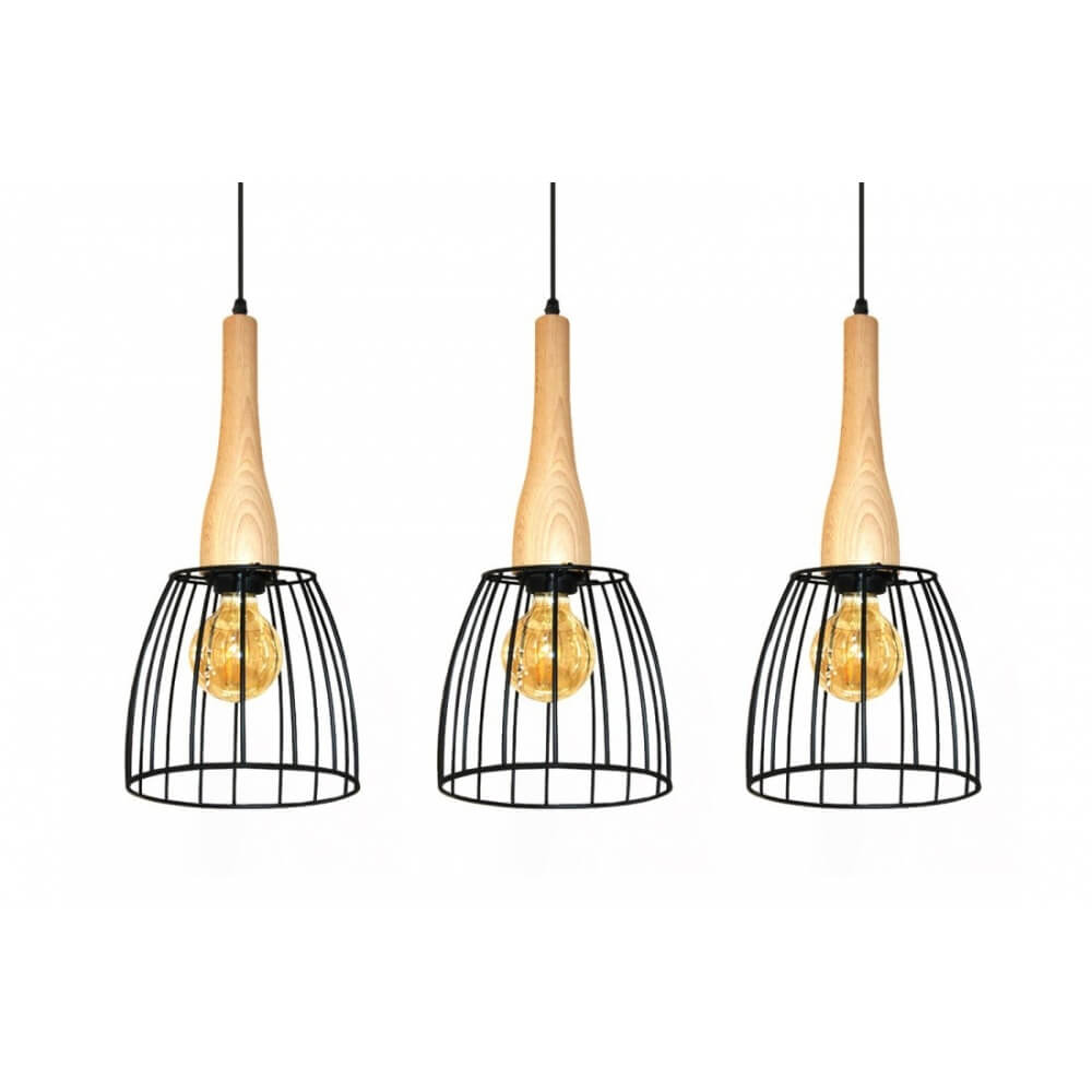 Lampa wisząca Terata to oprawa wykonana z metalu i drewna. Oprawki na żarówki zostały pokryte ażurowymi kloszami wykonanymi z prętów. Czarna konstrukcja doskonale współgra z drewnianym elementem, który łączy go z przewodem zasilającym. Istnieje możliwość regulowania wysokości lampy.