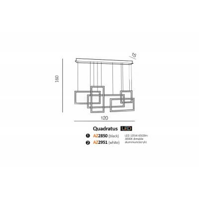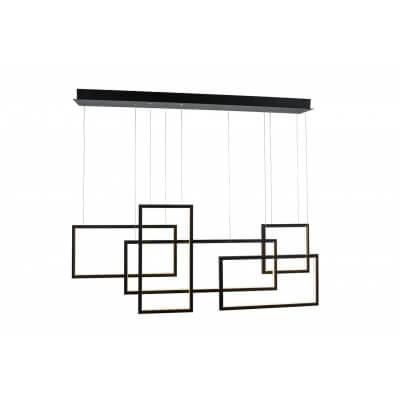 Lampa wisząca Quadratus wykonana jest z metalu. Składa się z kilku prostokątnych ramek ze zintegrowanym oświetleniem LED ustawionym poziomo i pionowo. Jest to duża lampa, która z pewnością dobrze oświetli duże pomieszczenia. Idealna do sypialni, jadalni czy biura.