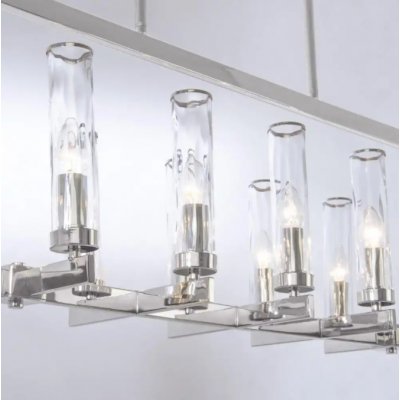 Lampa wisząca Oxford wykonana jest z metalu i szkła. Lampa jest w kolorze srebrnym. Lampa składa się z metalowej ramy i lamp przykrytych szklanymi abażurami.