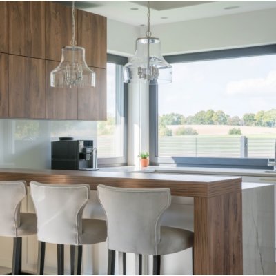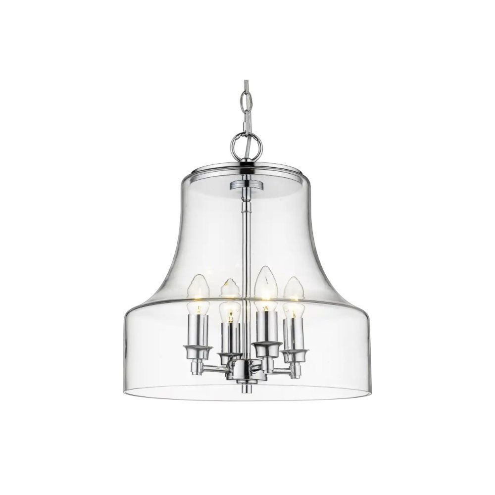 Lampa wisząca Prague wykonana jest z metalu i szkła. Lampa jest w kolorze srebrnym. Lampa składa się ze źródeł światła i szklanego klosza.