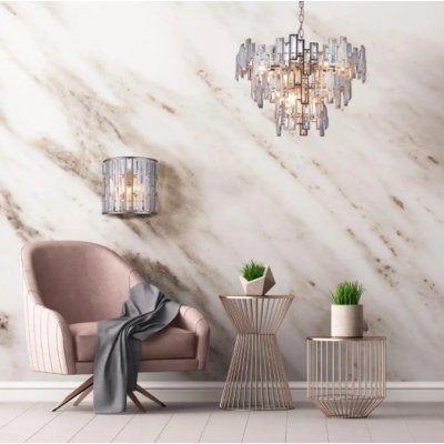 Lampa wisząca St Petersburg wykonana jest z metalu i kryształu. Lampa jest w kolorze szampańskim. Lampa składa się z trzech obręczy wypełnionych kryształami.