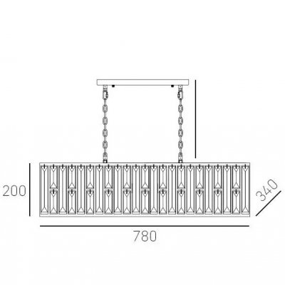 Lampa wisząca Kyiv składa się z metalowej ramy i kryształów rozpraszających światło.
