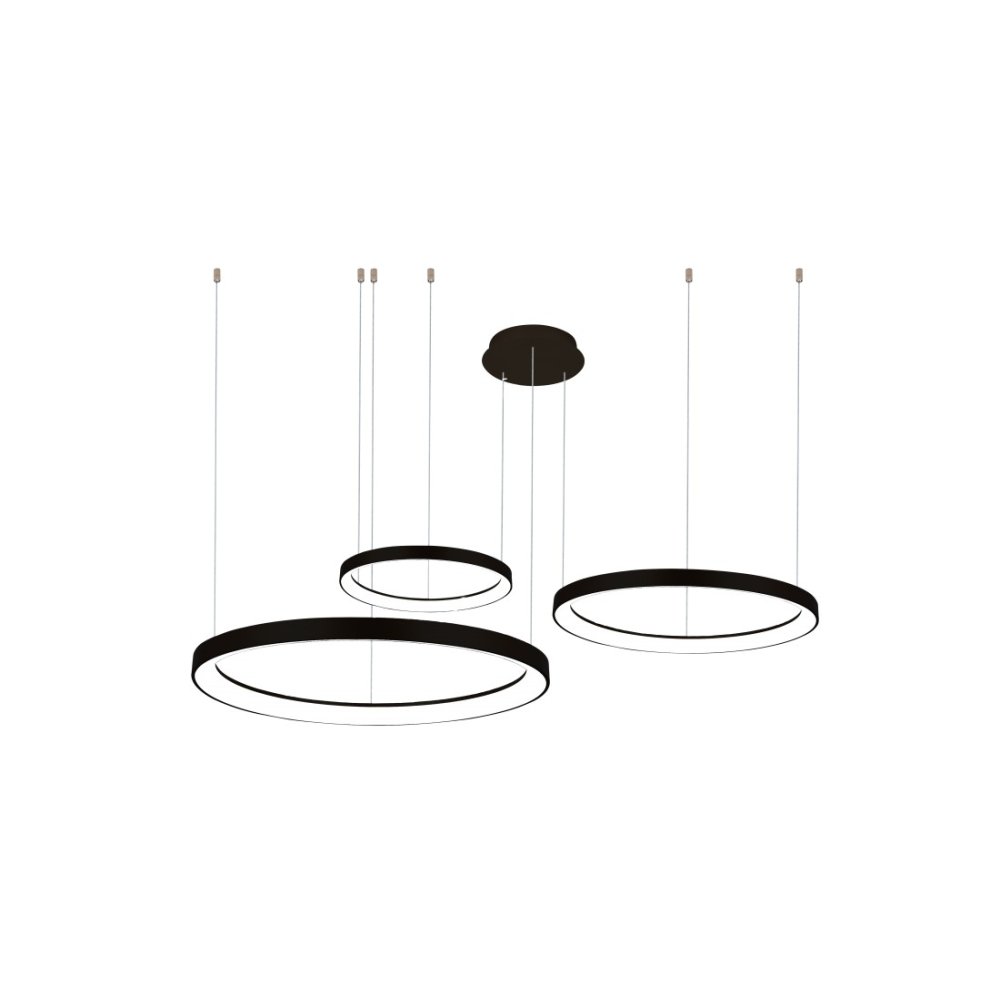 Szeroki pierścień wykonany został z aluminium i montowany jest do sufitu dzięki długim przewodom.