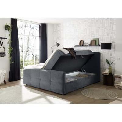 Posiada pojemnik na pościel, który otwiera się od boku łóżka.