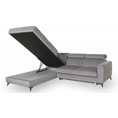 Narożnik posiada również funkcję spania okazjonalnego oraz pojemnik na pościel.