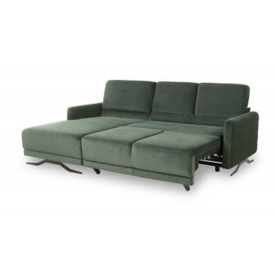 Narożnik posiada również funkcję spania oraz pojemnik na pościel.