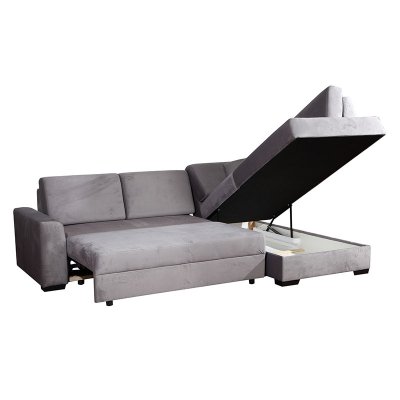 Narożnik Minesota to nowoczesny mebel wypoczynkowy. Narożnik uniwersalny Posiada funkcję spania codziennego oraz pojemnik na pościel. Wypełnieniem mebla jest pianka wysoko elastyczna HR na sprężynie falistej i bonellowej. Posiada automatyczny system rozkładania. Stoi na czarnych nóżkach.