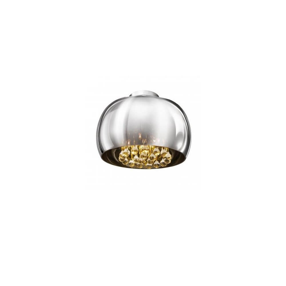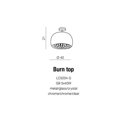 Plafon Burn wykonany jest z chromowanego metalu i szkła. Zaokrąglony, chromowany klosz został ozdobiony transparentnymi łezkami wykonanymi z kryształu. Plafon ten będzie nie tylko elementem oświetlenia, ale też piękną dekoracją. Oprawa ta sprawdzi się we wnętrzach domowych takich jak pokój dzienny czy sypialnia oraz w przestrzeni biurowej.