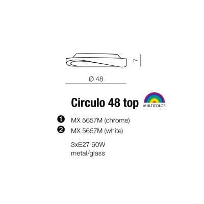 Plafon Circulo wykonana jest z metalu i szkła. Minimalistyczna forma oprawy pozwala z łatwością dopasować ją do aranżacji w rozmaitym stylu. Klosz ma kształt dysku o falistej krawędzi. Plafon sprawdzi się w przestronnych pomieszczeniach takich jak pokój dzienny, sypialnia, biuro czy kuchnia.
