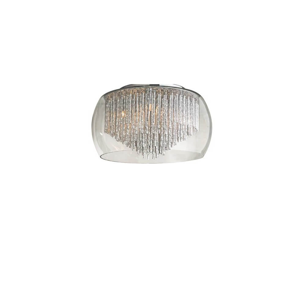 Plafon Rego wykonany jest z metalu, aluminium, szkła. Dekoracyjny wygląd plafonu sprawia, że idealnie sprawdzi się w pomieszczeniach mocno ozdobnych, zwłaszcza w stylu glamour. Może być również wykorzystany jako jedyny ozdobny akcent we wnętrzu minimalistycznym lub klasycznym. Oprawa składa się z kilku elementów. Z zewnątrz otacza ją szeroki pierścień z przeźroczystego szkła. W środku znajdują się metalowe rurki o różnej długości.