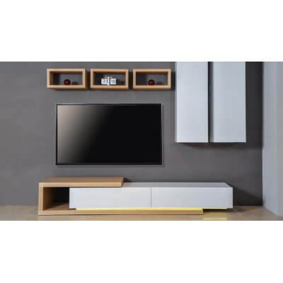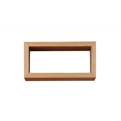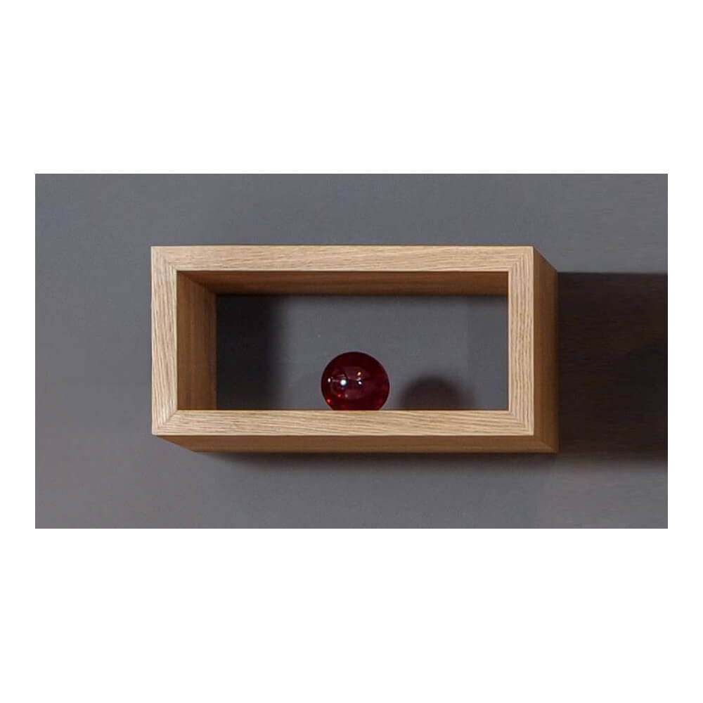 Prostokątna półka na ścianę, wykonana z płyty fornirowanej pokrytej naturalną dębową okleiną.