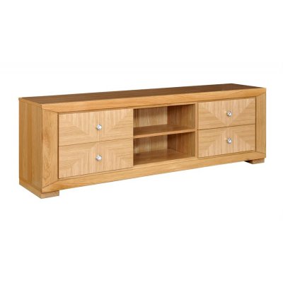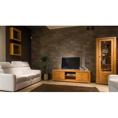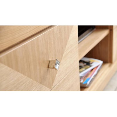 Szafka RTV 185 "Cube". Nowoczesny mebel z rzeźbionymi listwami i ręcznie składanymi intarsjami na frontach.