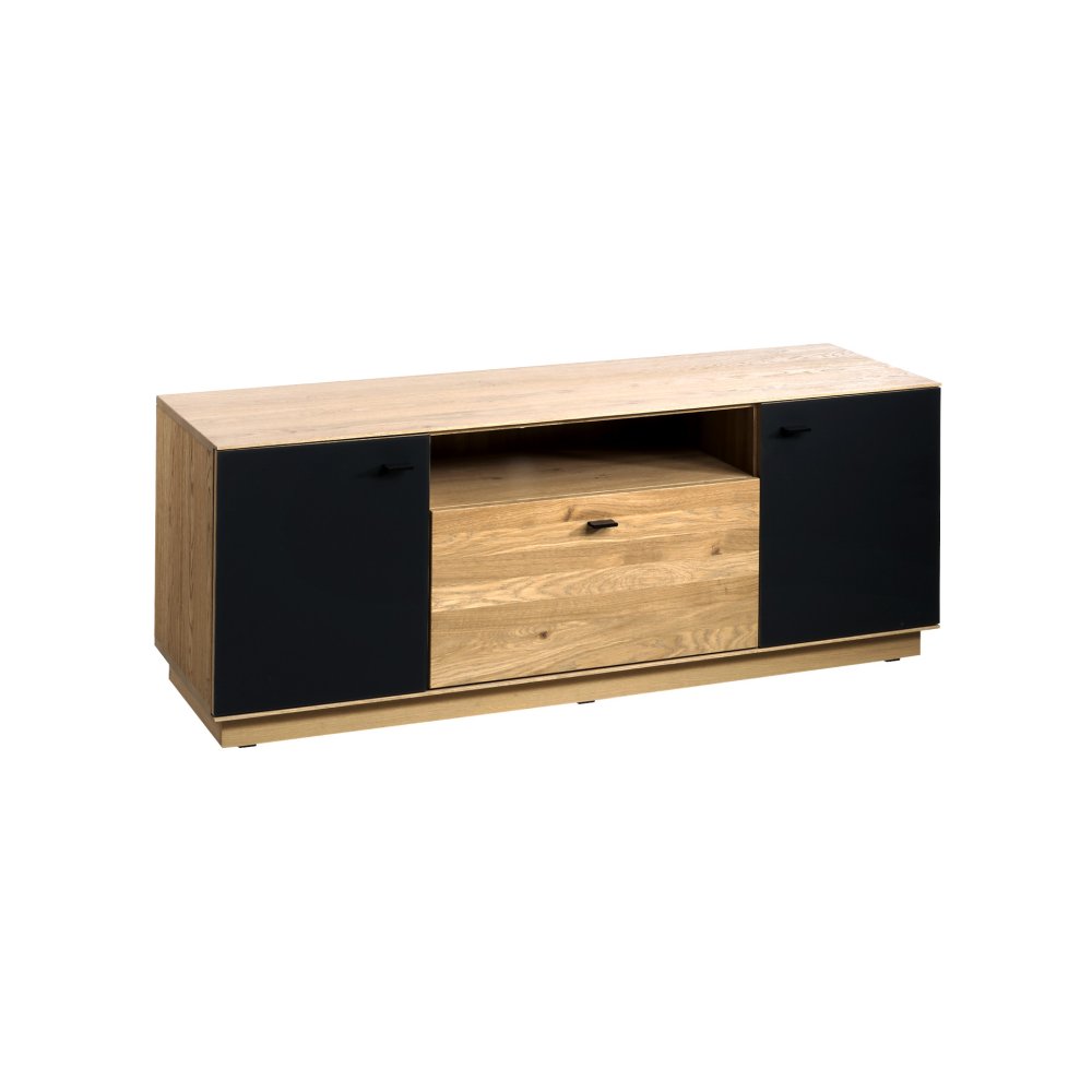 Szafka RTV z kolekcji "Corena" to prosta bryła o dopracowanych proporcjach w połączeniu z subtelnym dekorem.