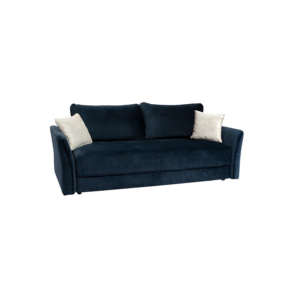 Sofa Bend to wygodny i elegancki mebel wypoczynkowy. Posiada funkcję spania oraz pojemnik na pościel z systemem automatycznego rozkładania. Wypełnieniem sofy jest pianka wysoko elastyczną HR na sprężynach falistych. Oparciem są dwie duże pikowane poduchy, które przy rozkładaniu funkcji spania można swobodnie zdjąć. Sofa stoi na klasycznych czarnych nóżkach.