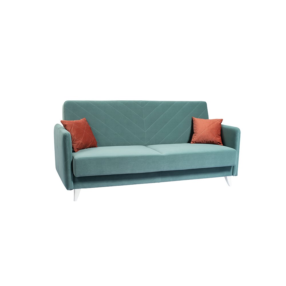 Sofa Aurora to wygodny i elegancki mebel wypoczynkowy. Posiada funkcję spania oraz pojemnik na pościel. Posiada automatyczny system rozkładania. Wypełnieniem sofy jest pianka wysoko elastyczną HR na sprężynach falistych albo bonellowych.