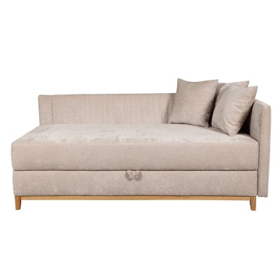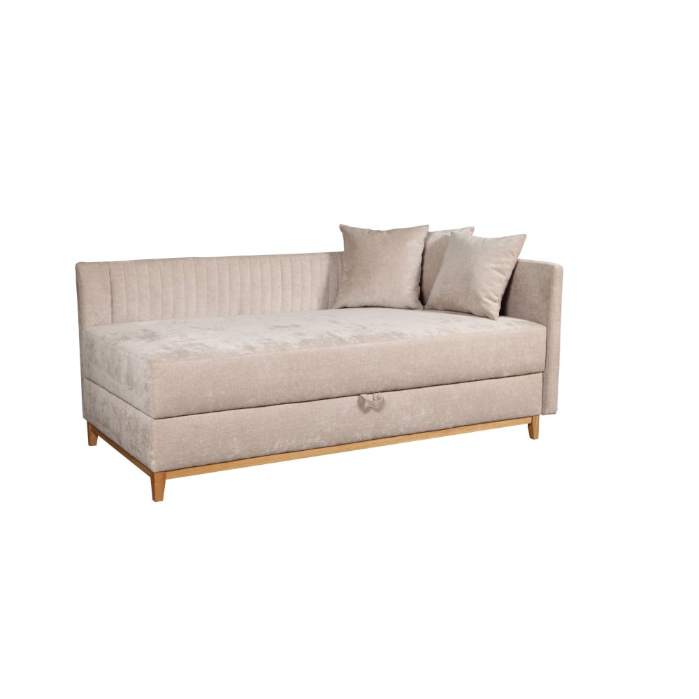 Tapczan zaopatrzony jest w wysokie, drewniane nóżki wraz z ramą w kolorze "olejowany dąb".