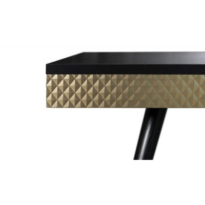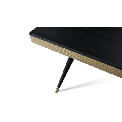 Mebel posiada nogi z litego drewna, wybarwione na czarno lub biało, z metalowymi zakończeniami w kolorze listwy.