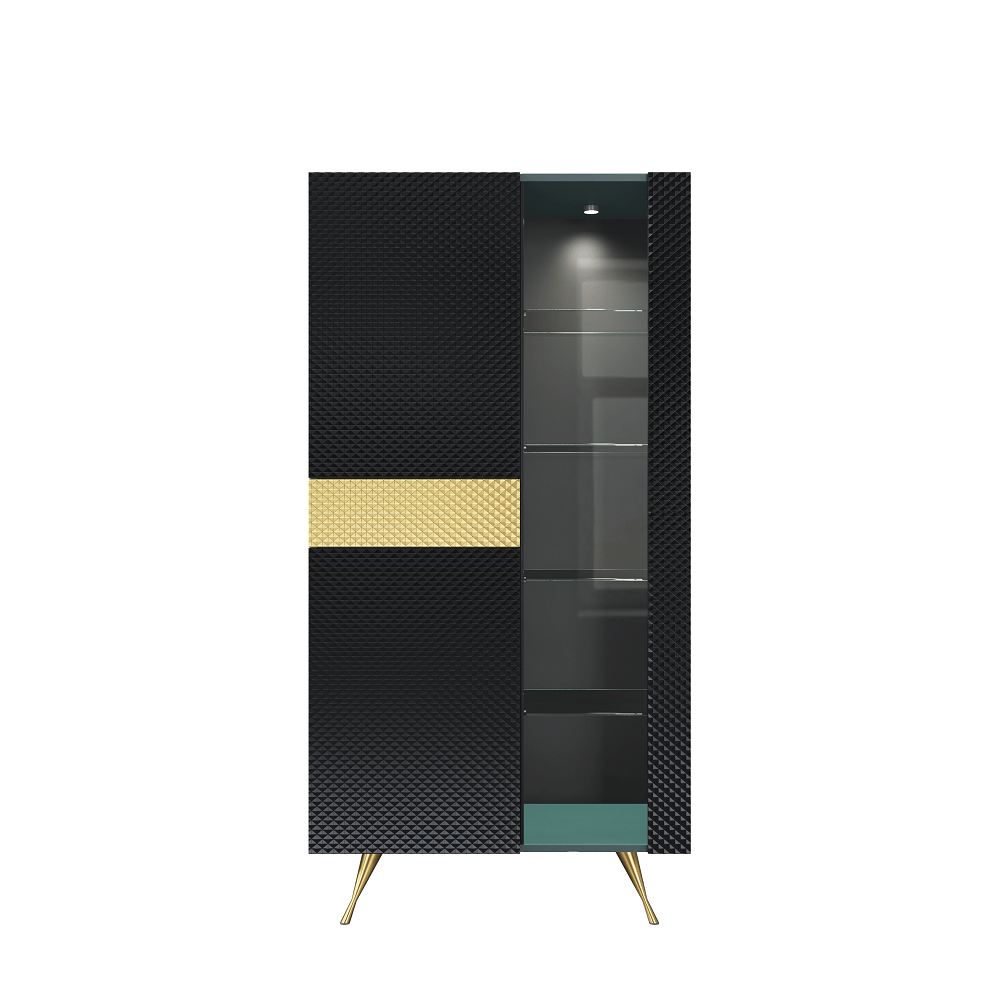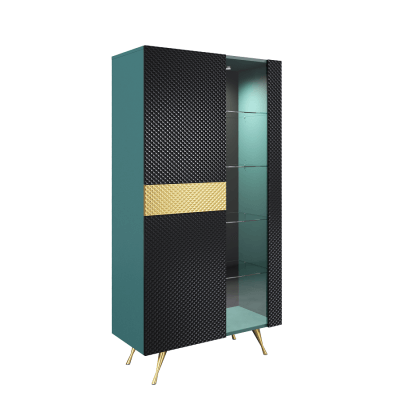 Stylowa witryna Vivien. Korpus wybarwiono w kolorze petrol (zieleń butelkowa).